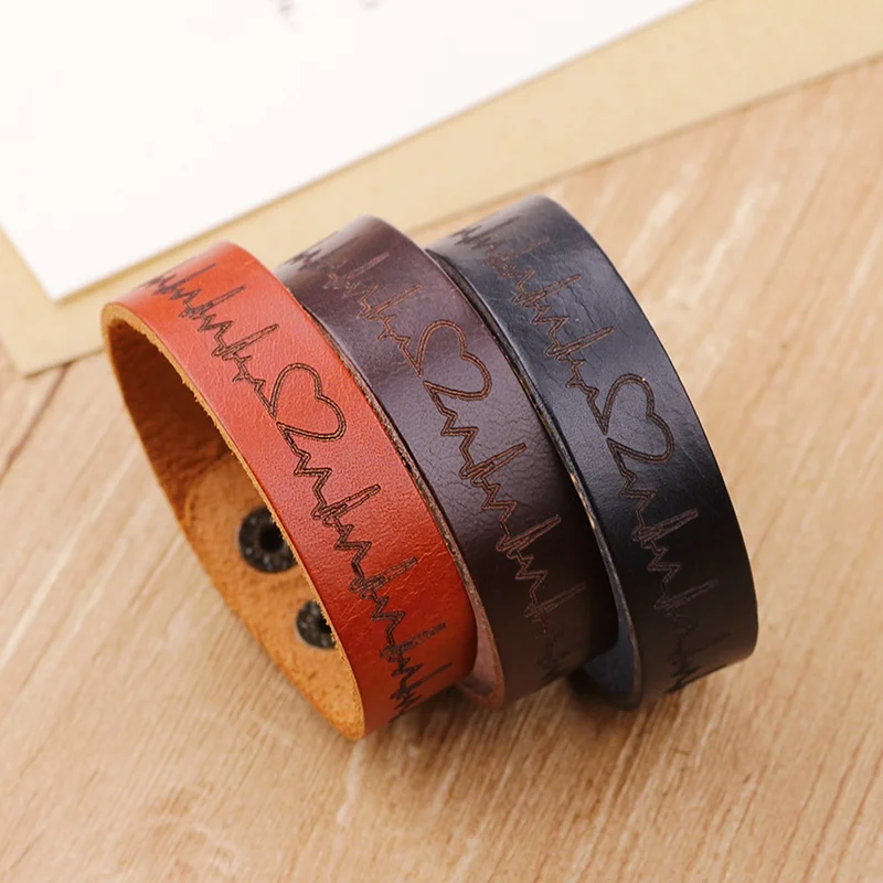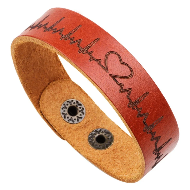 Voucher New Medical Heartbeat Bracelets Men Vintage Black Brown Leather Bracelet For Women Electrocardiogra